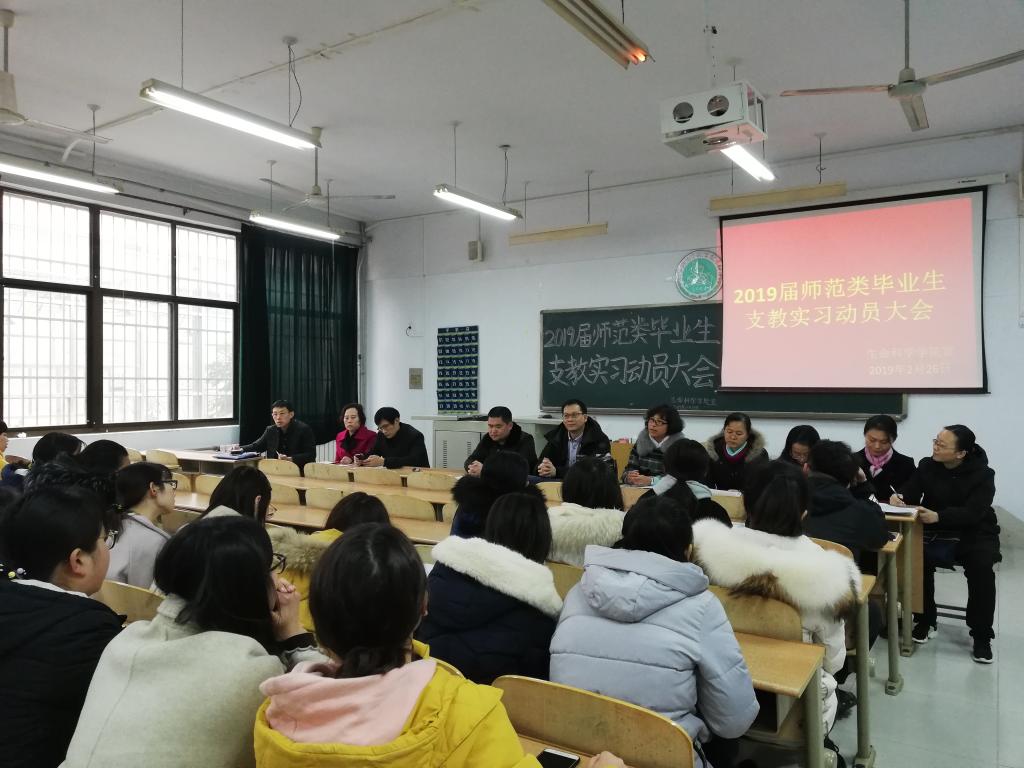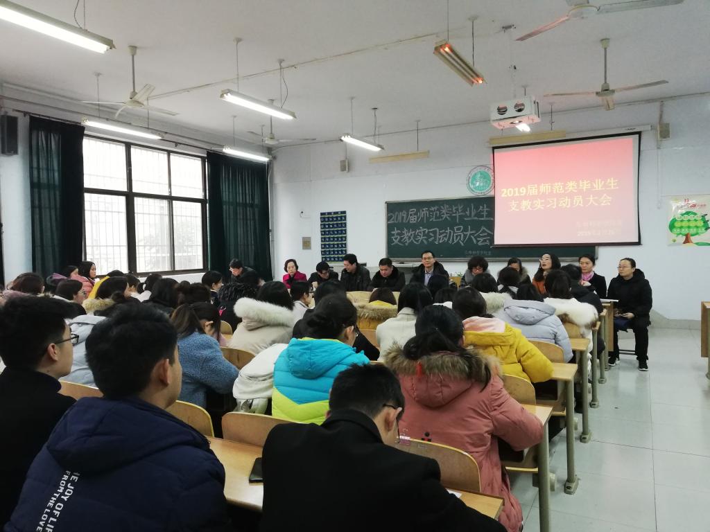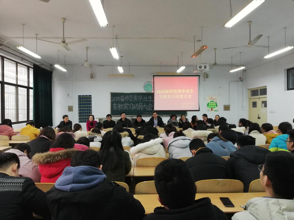2019年2月26日下午,久久久亚洲精品在求实楼1007教室顺利召开2019届师范类毕业生支教实习动员大会。出席本次大会的有院长曾强成、副院长王丽燕、支教带队老师及2015级师范类全体成员。