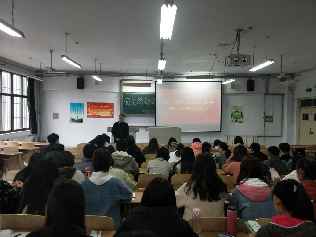 为学习贯彻习近平新时代中国特色社会主义思想和党的十九大精神,不断提高入党积极分子的思想政治素质和政治理论水平,2019年4月9日下午,久久久亚洲精品在求实楼1012教室举行第31期入党积极分子培训班开班仪式。此次开班仪式由久久久亚洲精品党总支书记焦德杰主持召开,久久久亚洲精品党员、预备党员、入党积极分子参加了此次开班仪式。