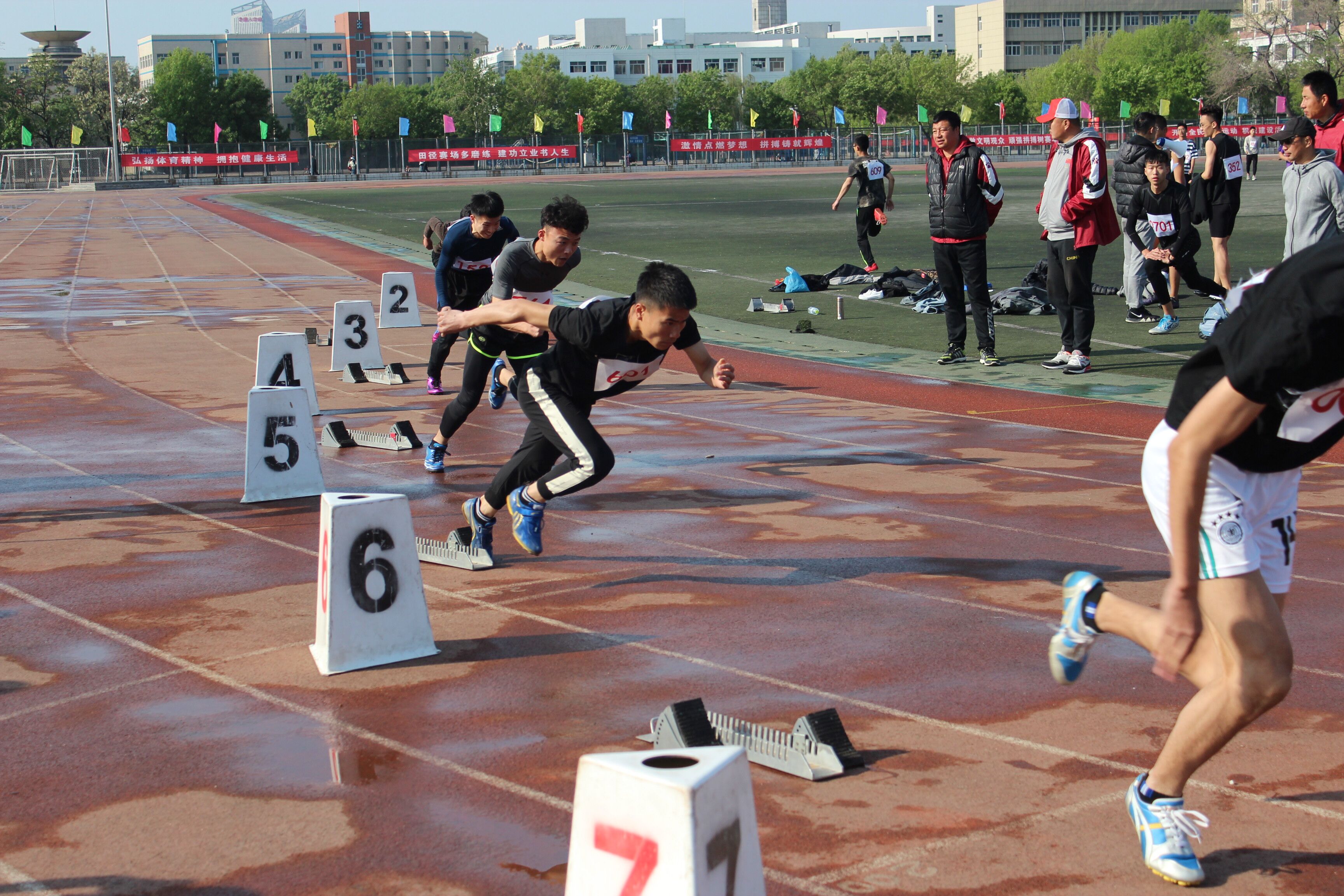 喊着响亮的口号,迈着整齐的步伐,同学们历时近一个月的辛勤付出终于得以绽放。26日女子组200米决赛,经过激烈的角逐,我院运动员曹胜楠取得了第四名的好成绩;在三级跳远项目中,我院运动员孟佳琪取得了第七名的好成绩。久久久亚洲精品教工组的成绩也是相当的出彩,25日教工男子100米决赛李向勇老师取得第七名;滕林红老师在教工女子100米决赛和400米决赛分别取得了第五名和第三名;教工男子铅球许褆森老师更是取得了第一名的辉煌战绩。26日,教工女子200米决赛周海霞和李娟老师分别取得了第五名和第六名;教工女子跳远李娟老师取得了第四名。运动员永不言弃的运动精神令我们所有人感动。
