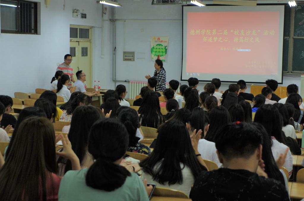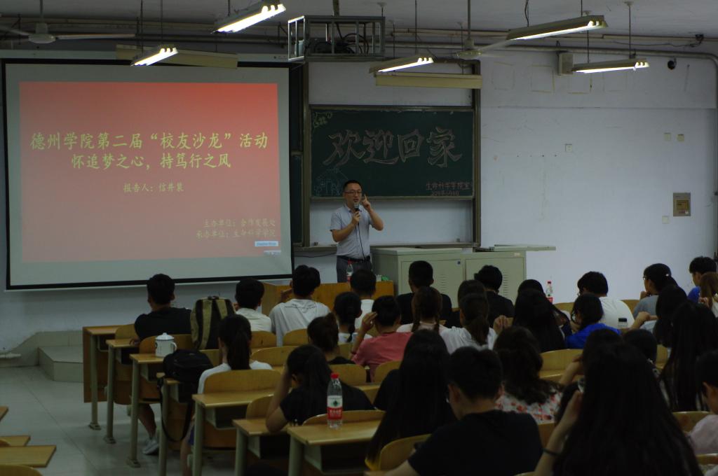 为增进毕业生与母校的联系,充分发挥优秀校友的带头作用,为学弟学妹树立良好的学习榜样。2019年6月4日德州学院久久久亚洲精品在求实楼1011教室举办“怀追梦之心,持笃行之风”校友沙龙活动。此次活动由2010级优秀校友信井斐师兄回到母校与同学交流,久久久亚洲精品党总支书记焦德杰、党总支副书记夏书珍、辅导员王传芬、周向军、郑金召参加了此次交流会。