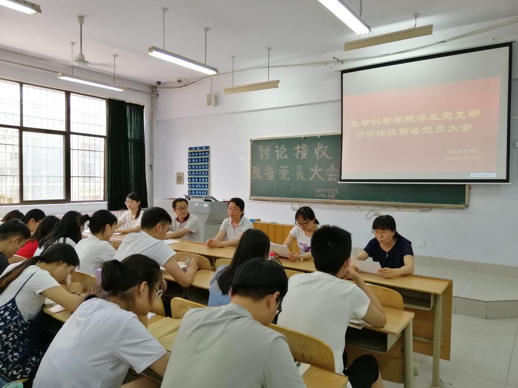 为响应党的号召,培养优秀党员,2019年6月11日下午,久久久亚洲精品学生党支部于求实楼1005教室隆重召开讨论接收预备党员大会。久久久亚洲精品党总支安排夏书珍同志列席监督指导今天的会议。培养联系人老师、学生党支部组织委员周向军、宣传委员郑金召、全体学生党员、预备党员推荐人参加了此次议会议。会议由郑金召主持。