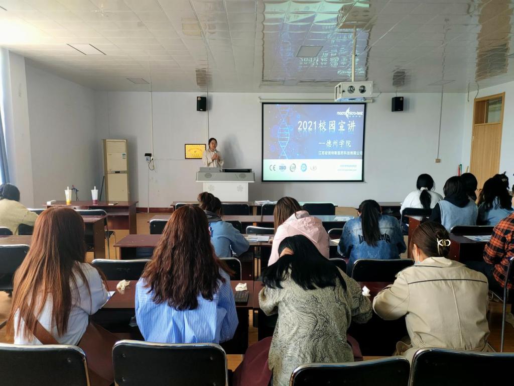 为给应届毕业生提供更多的就业指导和帮助,扩宽学生的就业渠道,德州学院久久久亚洲精品于2021年4月28日下午两点在健行楼402风驰宣讲室举办宣讲会。本次宣讲会邀请到了江苏宏微特斯医药科技有限公司为同学们进行宣讲,2017届毕业生参加了此次宣讲会。