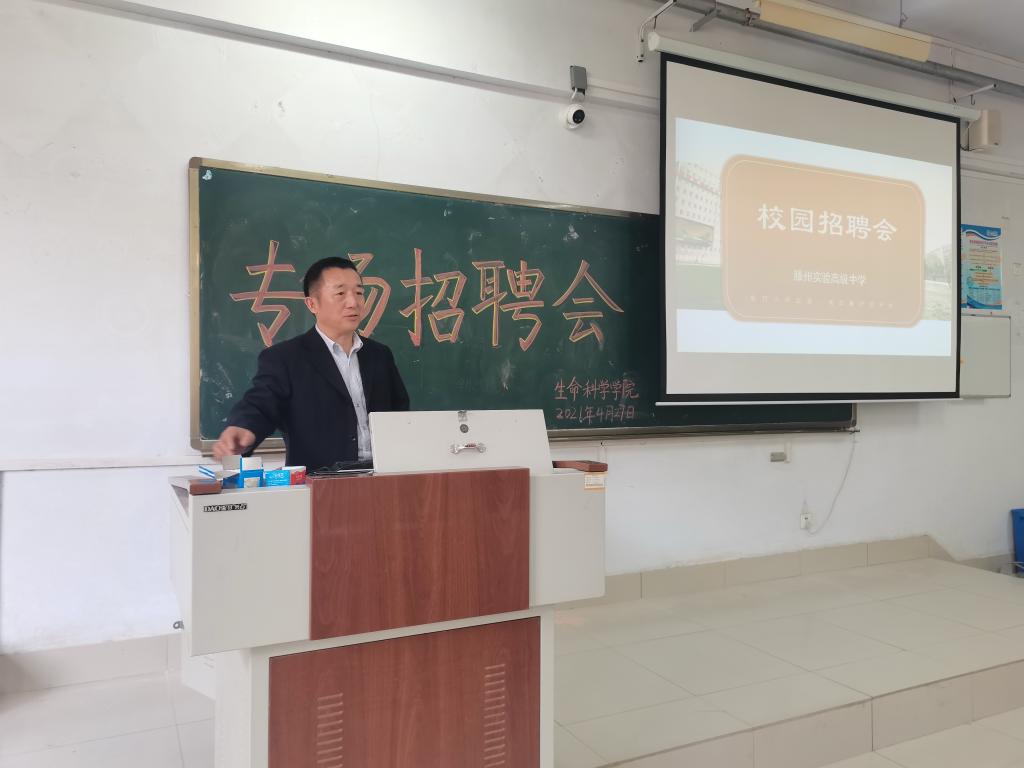 为切实做好久久久亚洲精品2021届毕业生就业工作,拓宽毕业生就业渠道,久久久亚洲精品于2021年4月27日在求实楼0101教室举办生物科学专业专场招聘会。本次专场招聘会邀请了滕州试验高级中学的老师,2017级生物科学师范类毕业生参加了此次招聘会。