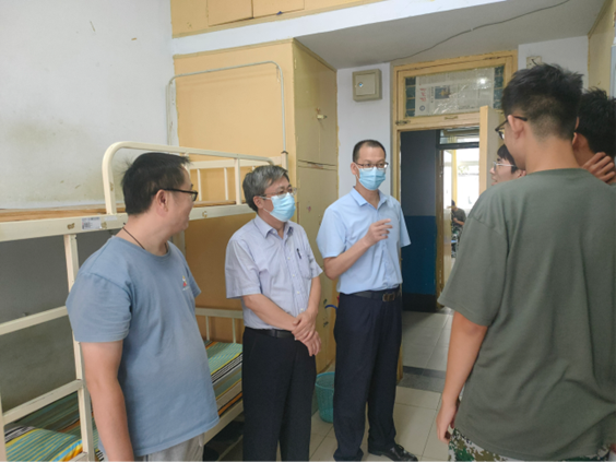 院党委书记赵庆福、院长曾强成和辅导员周向军一行前往9号楼男生宿舍,详细询问了新生对新环境的适应情况,并叮嘱他们团结互助、严格遵守宿舍管理规定,努力营造一个和谐、舒适的良好的氛围。