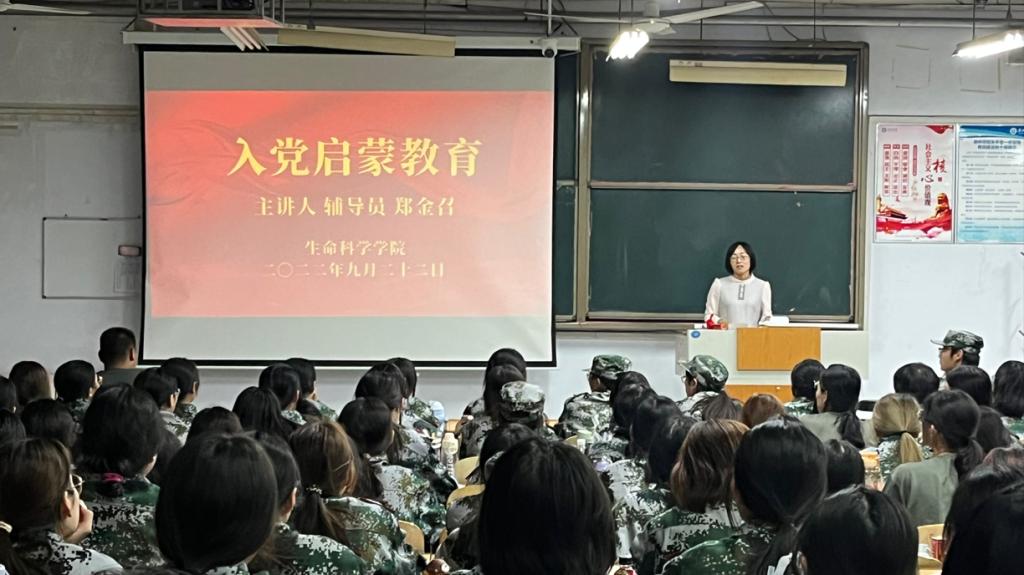 9月22日,我院第二学生党支部书记、辅导员郑金召在求实楼0111教室为2022级新生上了一堂生动的入党启蒙教育课。