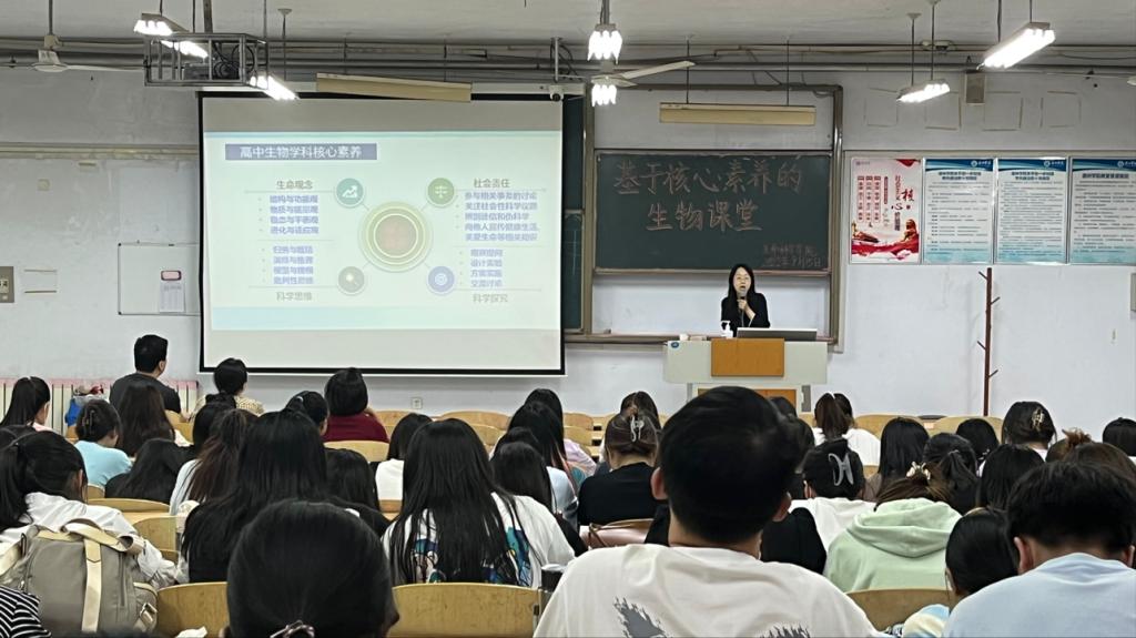 颜春玲教授作了题为《基于核心素养的生物课堂教学》的研究报告。报告中,颜教授利用典型例题,总结了当评价效果与预期不符时,教师应调查学生本身存在的知识漏洞和能力缺陷,及时进行弥补。同时,颜教授告诉大家,教师在课堂上要以核心素养为宗旨,引导学生多动脑、多练习,促进学科核心素养在教学中的落实。