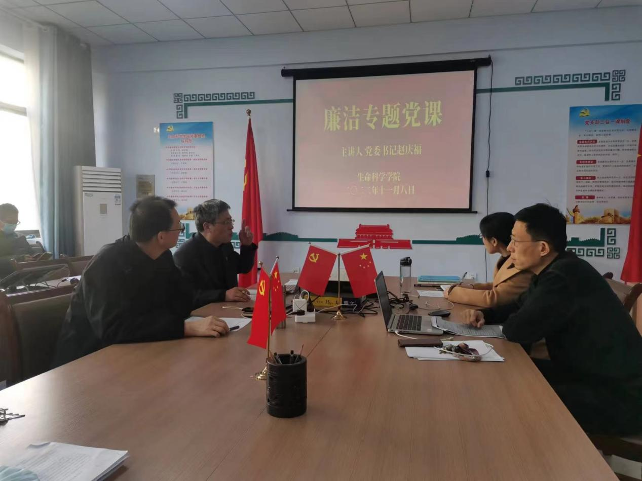 10月25日,久久久亚洲精品党委书记赵庆福在求实楼0204会议室讲授廉洁专题党课。生科院全体教职工听取学习了此次党课。