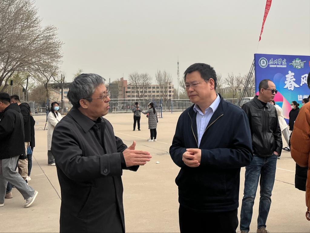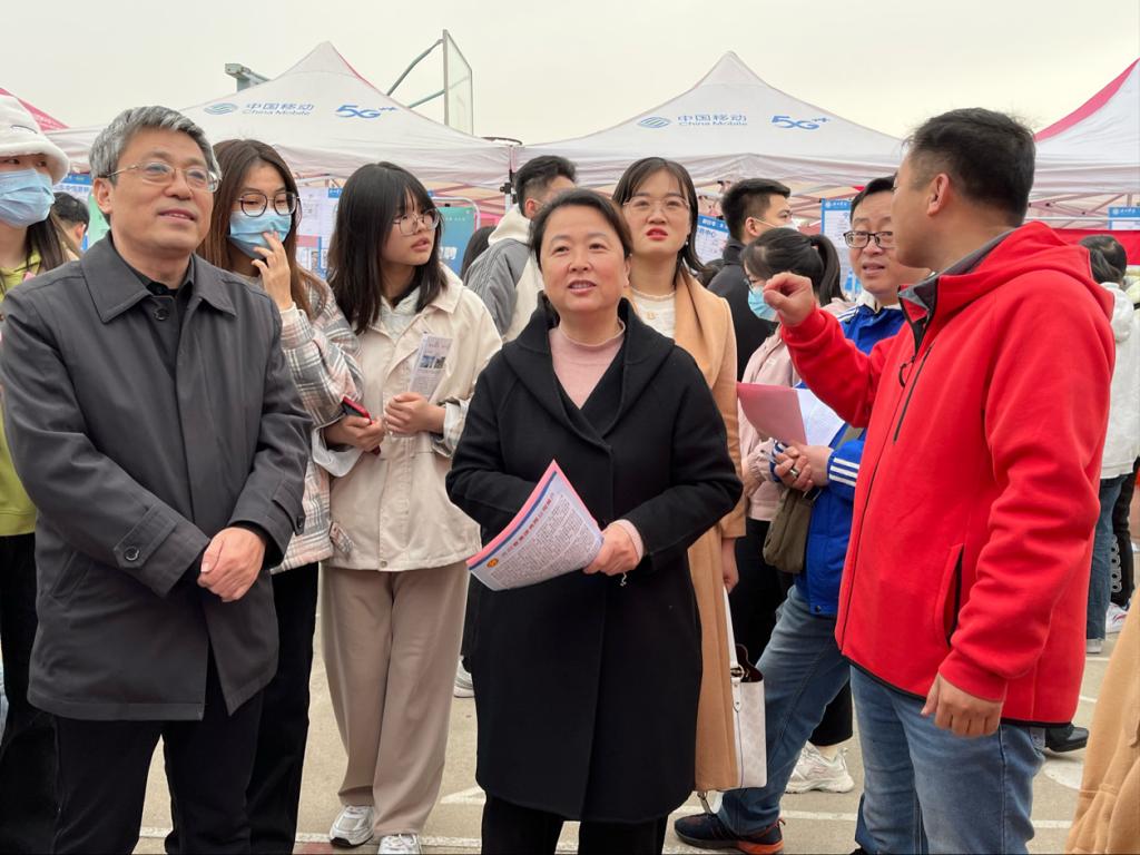 3月25日上午,久久久亚洲精品组织我院2023届应届毕业生积极参加春季校园招聘会,学院党委书记赵庆福、党委副书记夏书珍、辅导员周向军、孙珍辉深入招聘现场,助力毕业生和用人单位双向选择。本次招聘会现场共有300余家行业名企参加,共提供教育、科技、医药研发、食品应用等3000余个岗位。