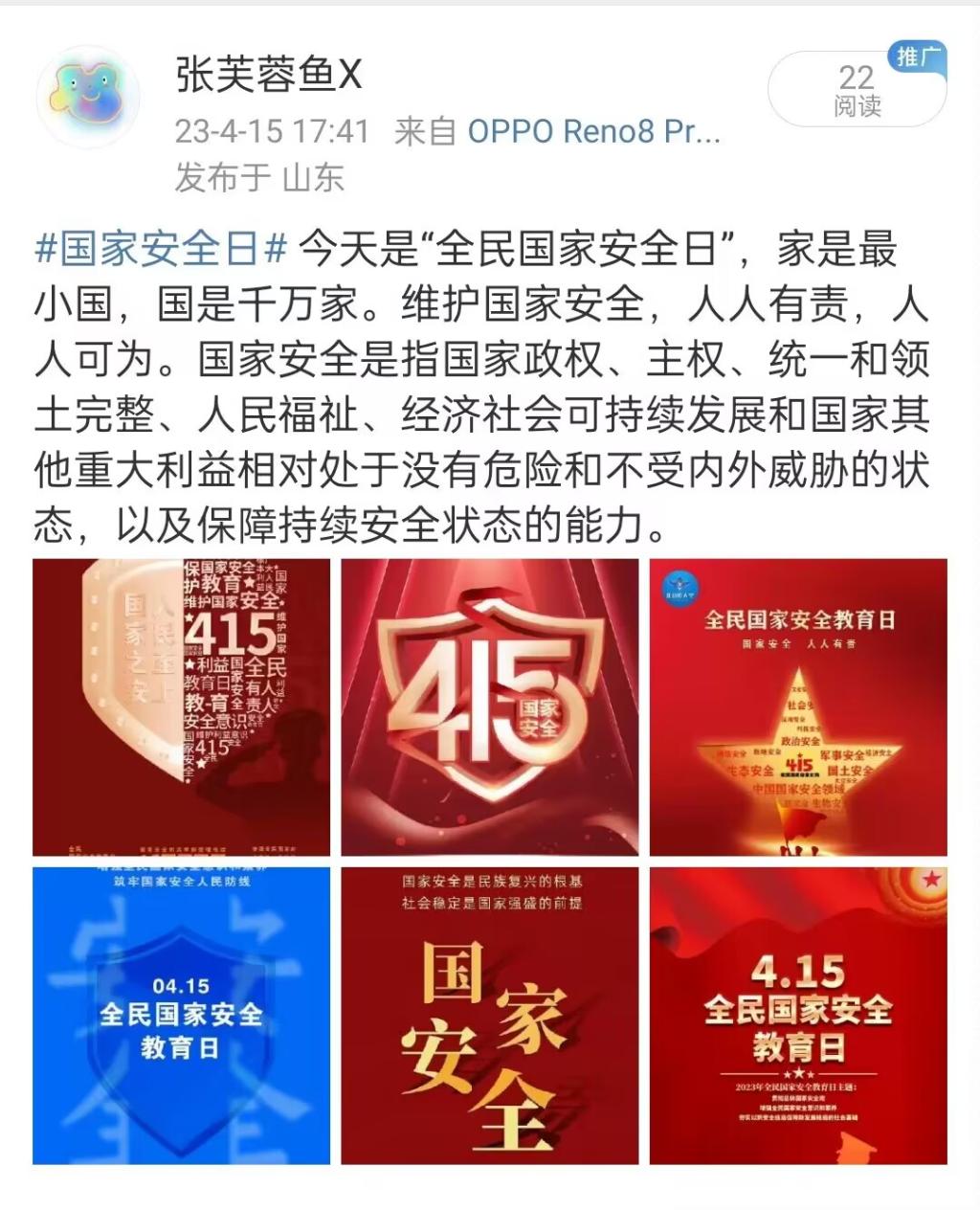 4月15日,为牢固树立总体国家安全观,推动国家安全教育工作广泛深入普及,增强同学们维护国家安全责任意识,久久久亚洲精品开展“微博#国家安全日#话题”互动活动。