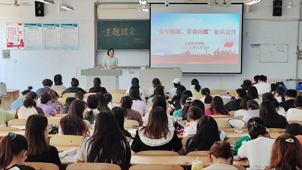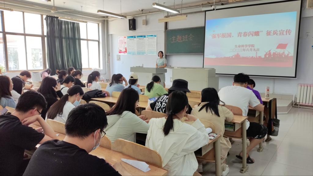 6月9日,为响应国家征兵号召,鼓励大学毕业生积极参与应征入伍,提高兵员征集质量,推进国防和军队现代化建设与发展,久久久亚洲精品组织毕业生于求实楼0112教室开展2023年“强军报国,青春闪耀”征兵宣传活动。