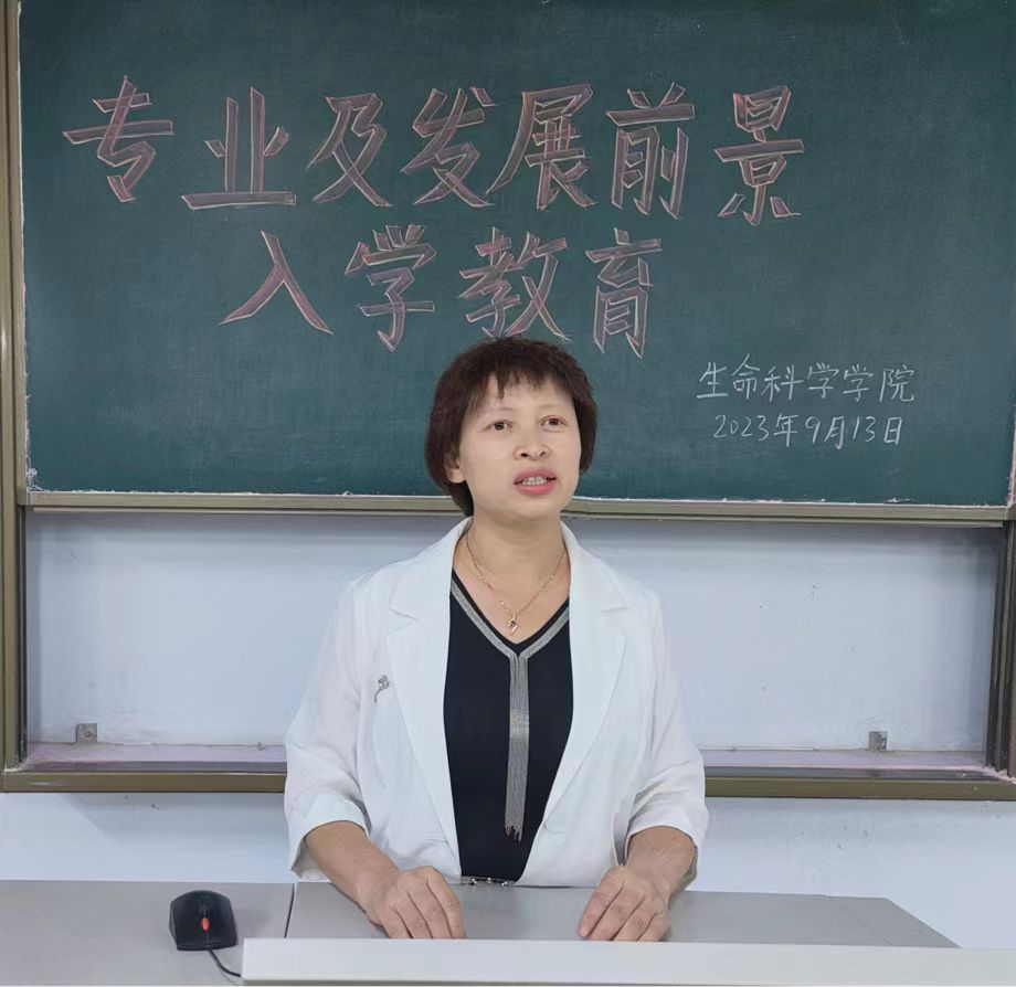 9月13日晚,我院生物信息学专业系主任张红梅于求实楼0116教室,为2023级新生开展入学教育。
