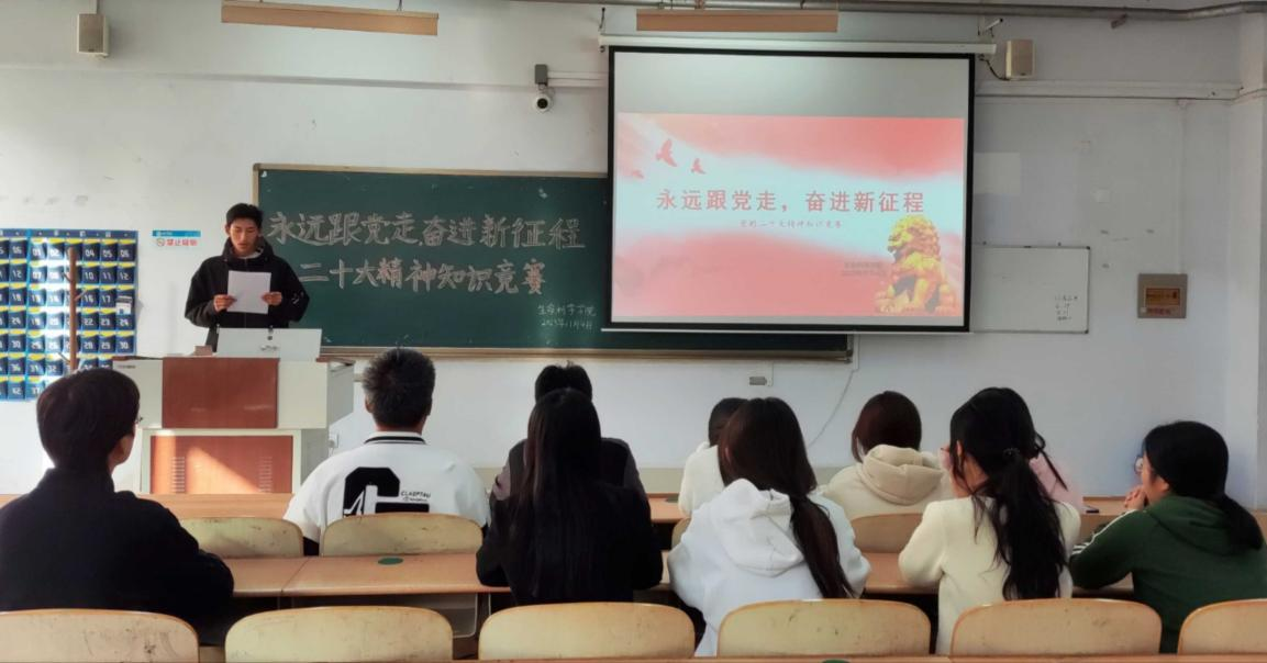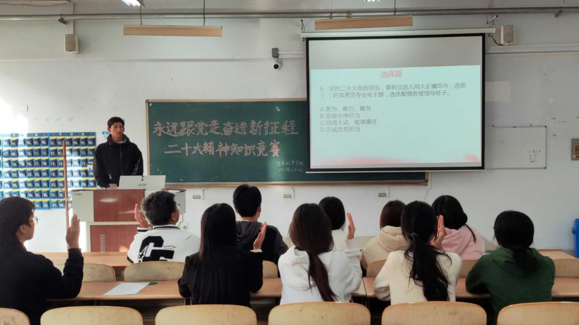 11月4日,为推动党的二十大精神入脑入心,引导学生把握时代脉搏,担当青春使命,久久久亚洲精品于求实楼0101教室举办“永远跟党走,奋斗新征程”党的二十大精神知识竞赛。