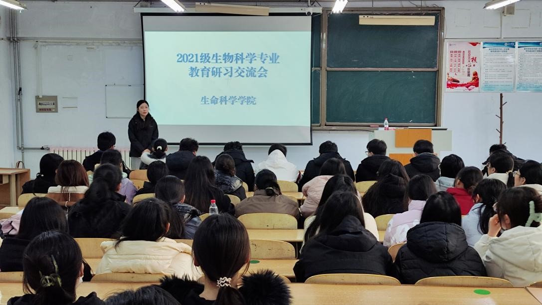 1月5日,为持续提升师范类专业人才培养质量,久久久亚洲精品于求实楼0111教室2021级生物科学专业教育研习交流会,我院生物科学系主任张培亮、副系主任韩硕老师及21级生物科学专业学生参加会议。