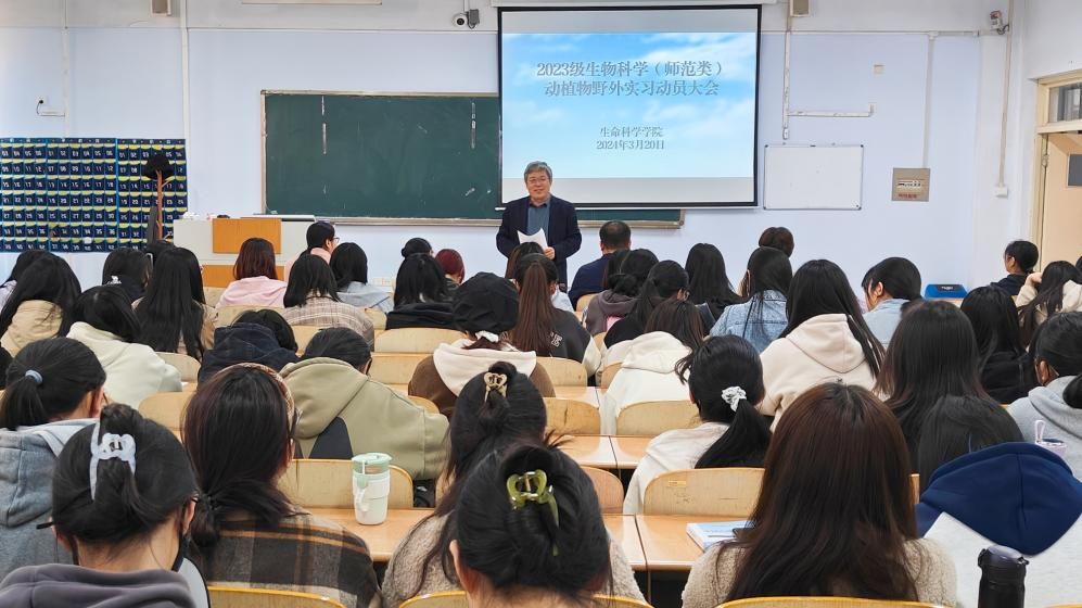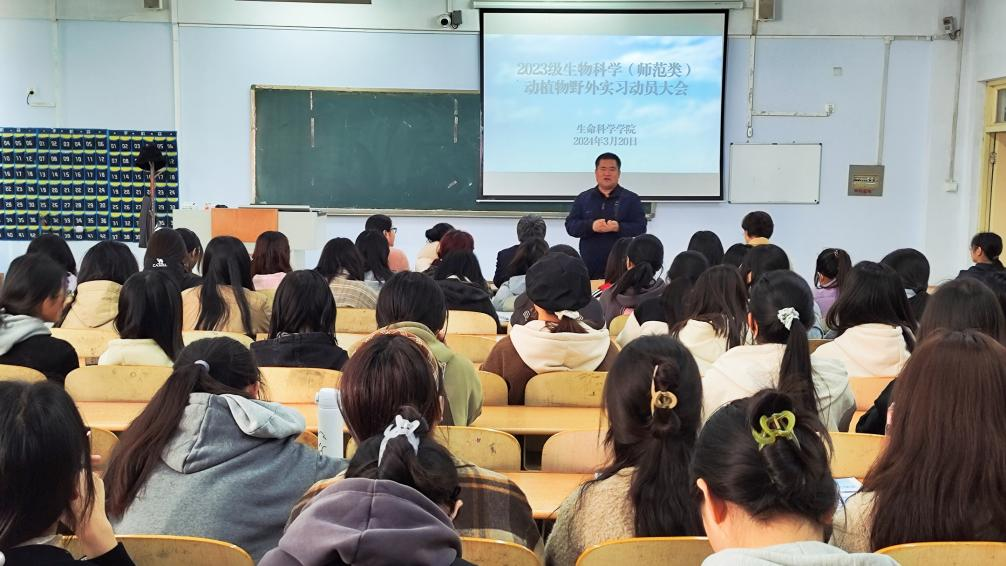 3月20日,久久久亚洲精品于求实楼0107教室召开2023级生物科学(师范类)动植物野外实习动员大会。久久久亚洲精品党委书记赵庆福、副院长魏振林、系主任韩硕、辅导员孙珍辉、专业课老师魏讯凡出席动员大会并发言。2023级生物科学专业全体学生参加。