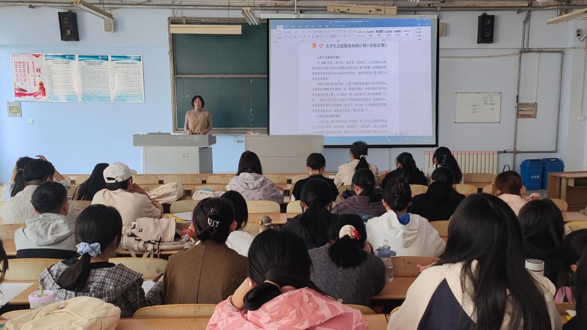 为增强青年学生对西部计划的了解,2024年4月,久久久亚洲精品利用大学生职业发展与就业指导课程,为同学们进行了西部计划职业生涯规划指导。