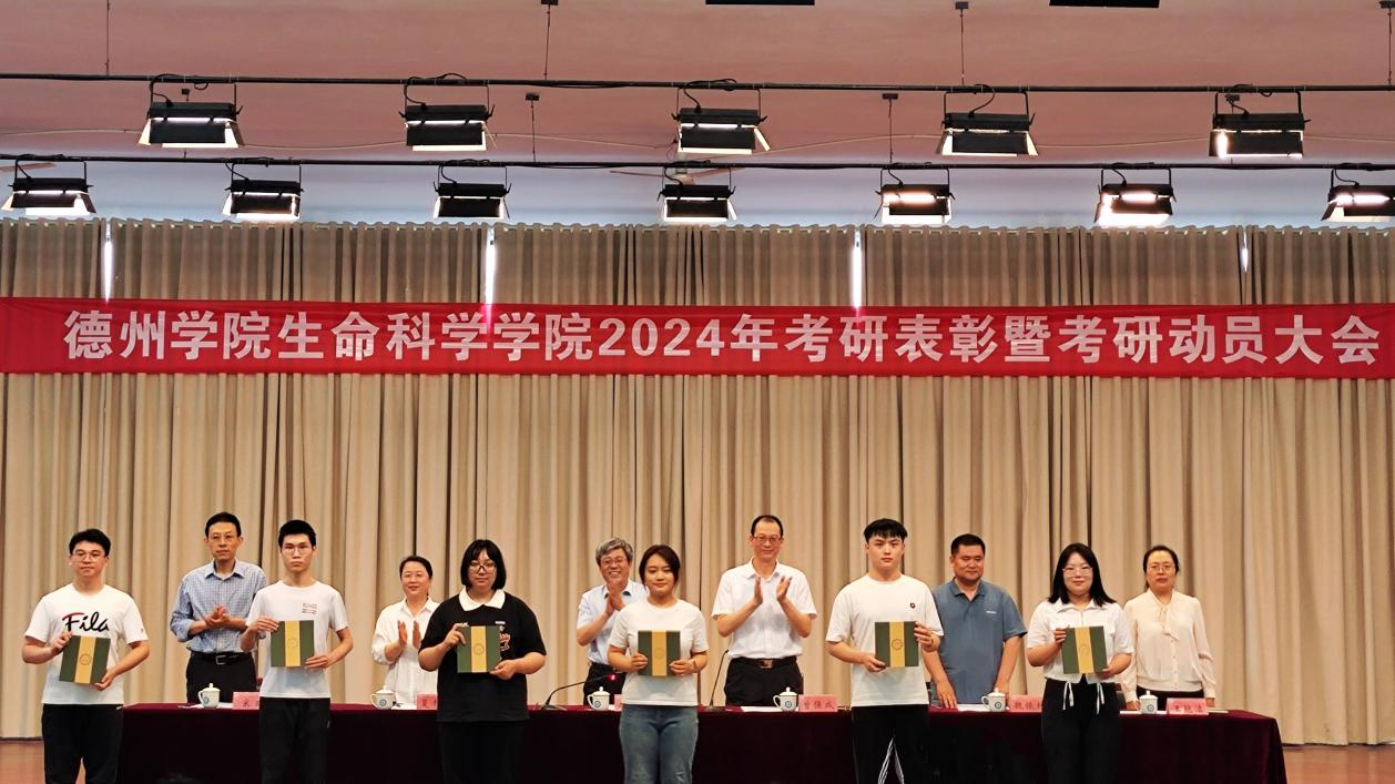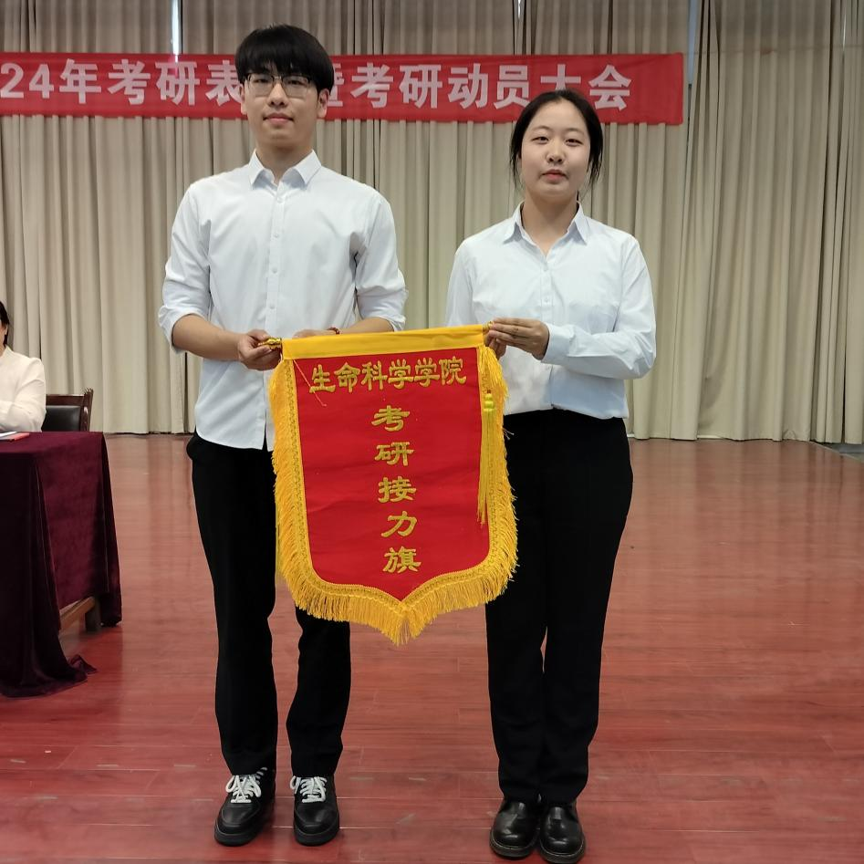 伴着庄严的国歌,大会拉开序幕。副院长魏振林宣读2024届考研学生录取名单。紧接着,在热烈的掌声中,与会领导、老师为受表彰的考研学生代表颁发奖品。随后,2024届优秀考研学生代表邹宇涵分享考研经验和心得,并将“考研接力旗”传递给下一届考研学生代表吴欣倢,她接过旗帜后,表达了对考研的坚定决心和必胜信念。