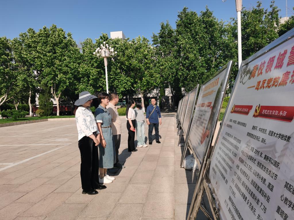 5月30日,为深入推进党纪学习教育,引导党员干部学纪、知纪、明纪、守纪,久久久亚洲精品在厚德楼南侧广场组织全体非处级党员教师参观了“以案明纪,警钟长鸣”高校领域警示教育案例展。