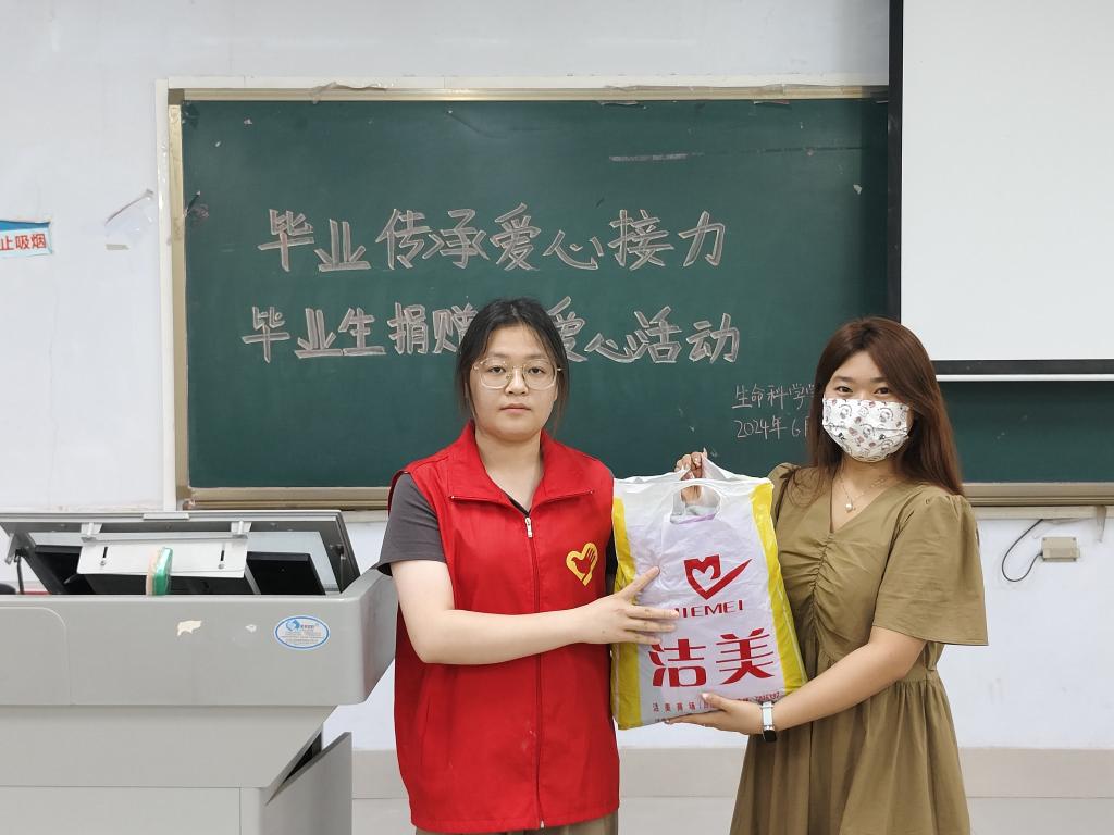 6月5日,为弘扬勤俭节约的传统美德,加强校园文化建设,增强同学们的环保意识和社会责任感,久久久亚洲精品于求实楼0105教室开展“毕业传承,爱心接力”毕业生捐赠献爱心活动。
