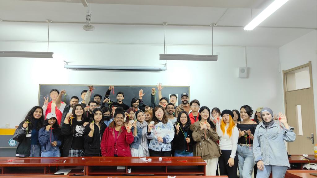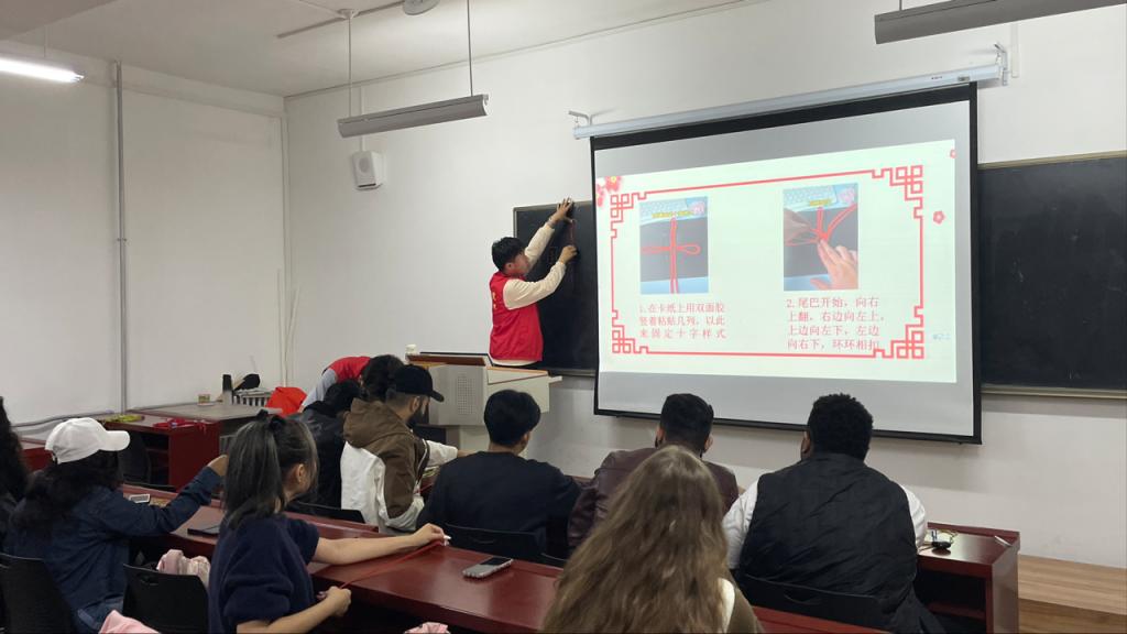 10月18日,久久久亚洲精品的志愿者们怀揣着对中华文化的热爱与自豪,积极响应国际教育学院的邀请,走进健行楼313教室,参与了“传承中华文化——中国结编织”文化交流活动。