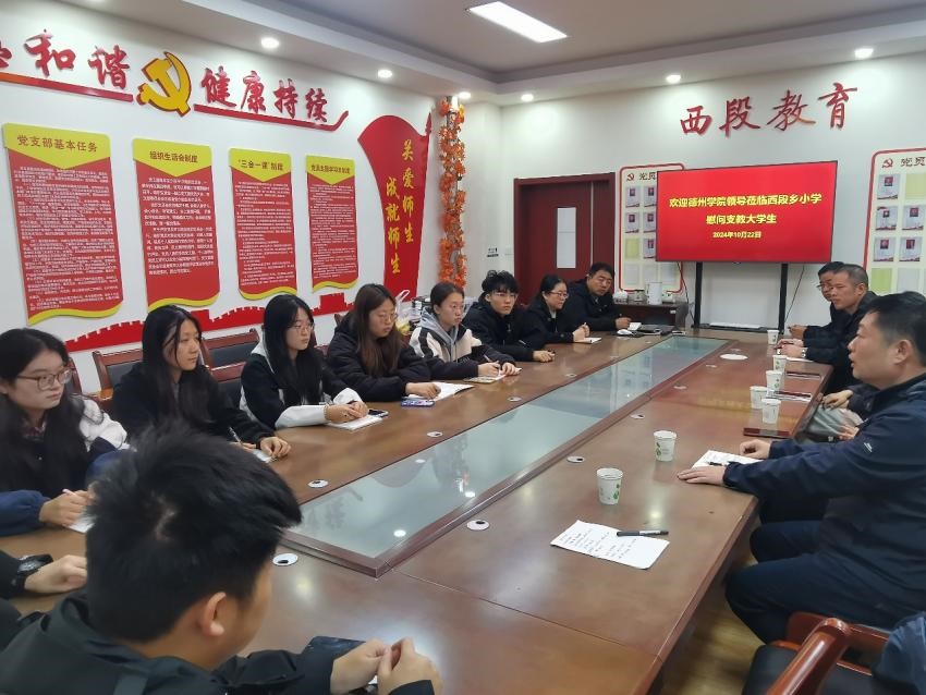 在孔镇中心小学,支教学校领导对德州学院师范生到农村支教表示热烈的欢迎,并对他们在支教期间的表现给予充分的肯定,赞赏其教育情怀和对学生的关心,并希望他们在掌握专业知识的基础上,了解学生心理,认真备课,实现学生的全面发展。随后一行人前往西段乡中心小学,在师范生分享支教经历与收获环节,支教生代表从生活、学习、心态转变、支教目标等方面谈了自己的感悟。随后支教单位领导详细介绍了师范生工作安排,对师范生在支教中的表现非常满意。教务处代表对支教学校的支持和包容表示感谢,并希望支教师范生能认识到身份的转变,以教师的标准严格要求自己,并提醒他们珍惜支教机会,认真学习,善于反思。在座谈中还强调了饮食、出行等安全事项,确保支教师范生的生活条件得到保障。