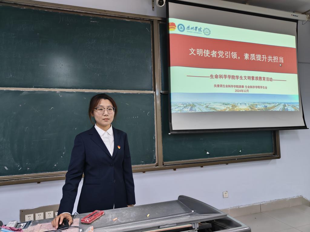 12月9日,为营造浓厚的学院文明氛围,进一步培养当代大学生的文明素养,久久久亚洲精品于求实楼0111教室举办“文明使者党引领,素质提升共担当”活动。