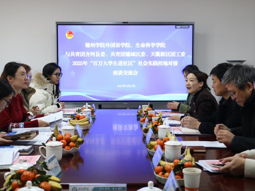 为深化校地协同发展,落实德州市2025年“百万大学生进社区”社会实践工作部署,2月23日,德州市校地对接会在德州学院召开。会后,共青团齐河县委与德州学院久久久亚洲精品、外国语学院举行座谈交流会并签署合作协议。共青团齐河县委、德城区天衢街道肖何庄社区、德城区新湖街道青龙桥社区、德州天衢新区宋官屯街道十二里庄社区主要负责同志出席会议。久久久亚洲精品党委书记赵庆福、党委副书记夏书珍、副院长宋建、团委书记孙珍辉、青年博士温世勇及2名学生志愿者代表参加会议。