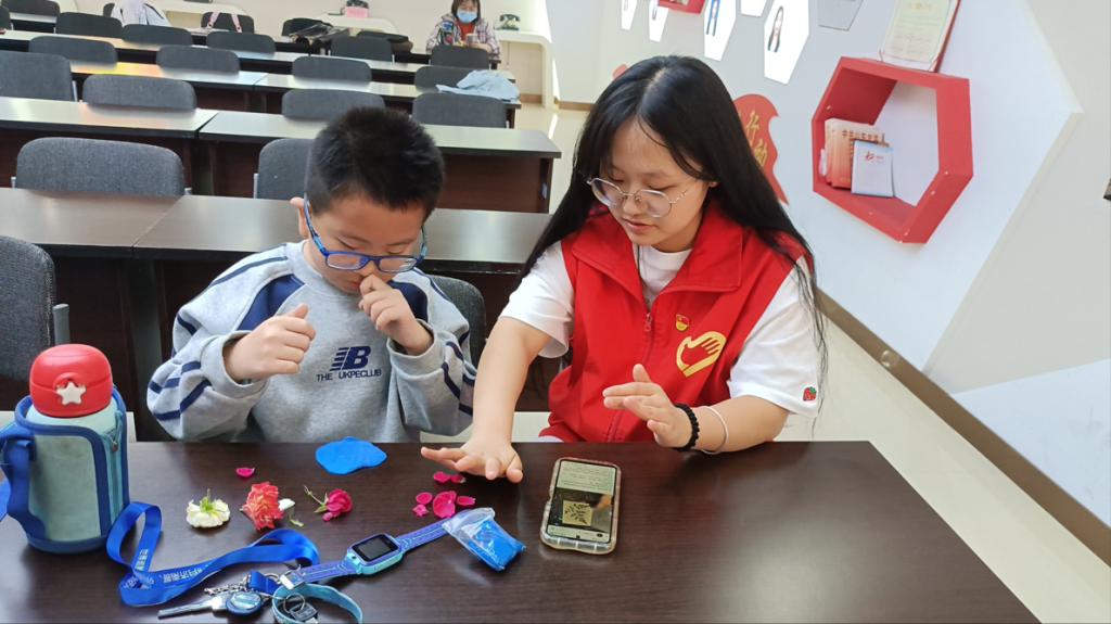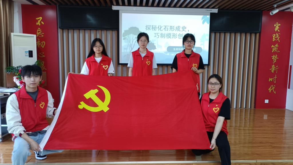 5月17日,党员志愿者们走进十二里庄社区,化身“自然导师”,通过生动讲解和化石标本展示,向孩子们揭开古生物化石的神秘面纱。用通俗易懂的语言介绍化石形成原理,引导孩子们观察化石中保留的植物纹理,感悟自然造物的神奇。在手工创作环节,党员志愿者们指导孩子们将植物标本压印成型,制作“仿真化石”模型,让孩子们在动手实践中感受自然观察的乐趣,更在潜移默化中传递了“劳动创造美”的理念。