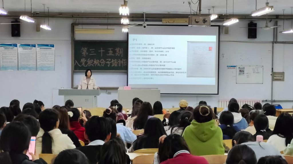 2023年4月20日,为进一步提高学院党组织在发展党员工作的严谨性和规范性,久久久亚洲精品第二学生党支部书记郑金召同志于求实楼0112教室作“行文理思路,下笔如有神”主题党课讲座。参训学员共127名。
