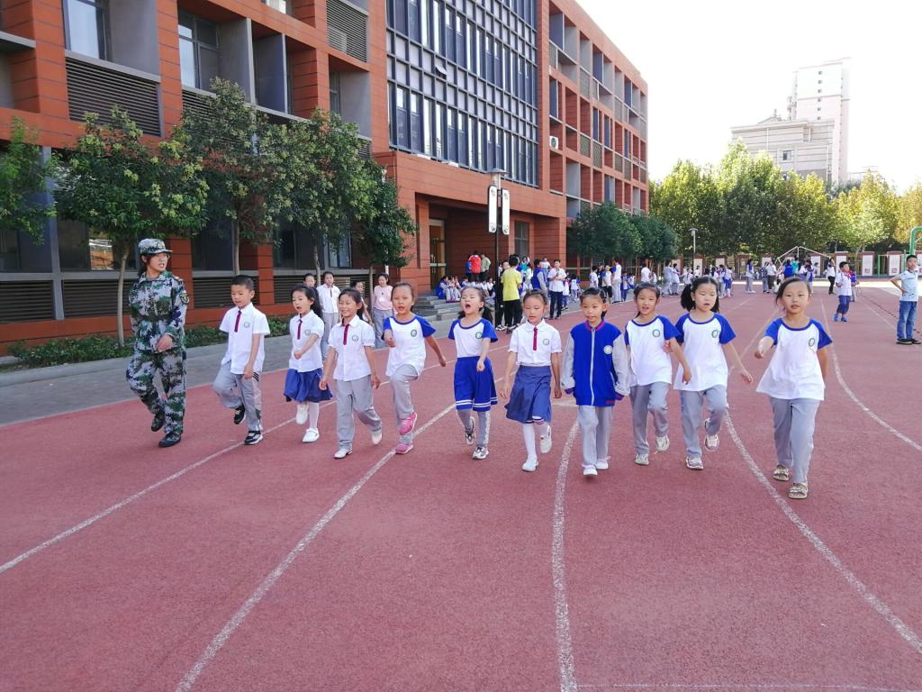 在中华人民共和国成立70周年到来之际,为了让孩子们感受军队精神,提高民族自豪感,同时锻炼孩子们的观察能力、肢体协调能力,提高他们的团结合作的意识。2019年9月24日下午,久久久亚洲精品在德州学院附属小学特别举办“中华人民共和国成立70周年之开学第一课”军训走方队体验活动。