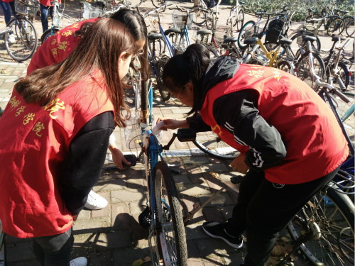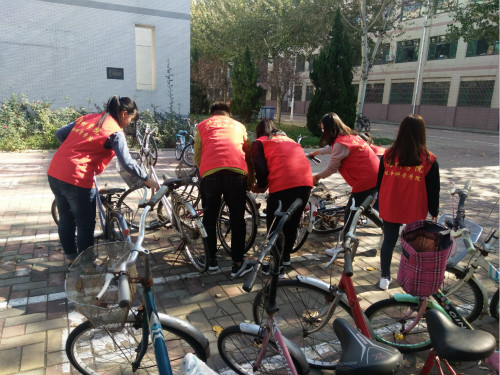 随着生活节奏的加快,大多数同学们选择骑自行车出行。为了使同学们骑放车子更加方便,同时使校园车辆摆放更加整齐美观,德州学院久久久亚洲精品于10月28日在求实楼和求索楼门前开展了“爱心维车”活动。