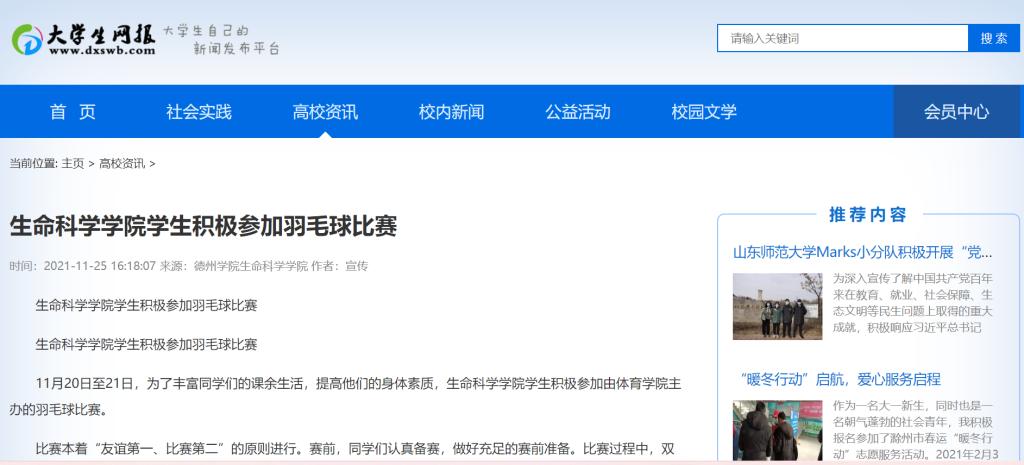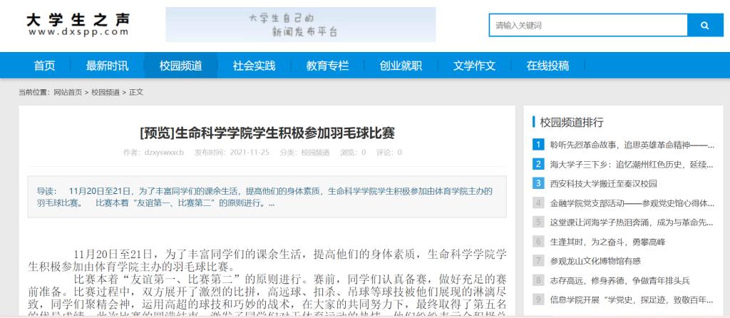 11月20日至21日,为了丰富同学们的课余生活,提高他们的身体素质,久久久亚洲精品学生积极参加由体育学院主办的羽毛球比赛。