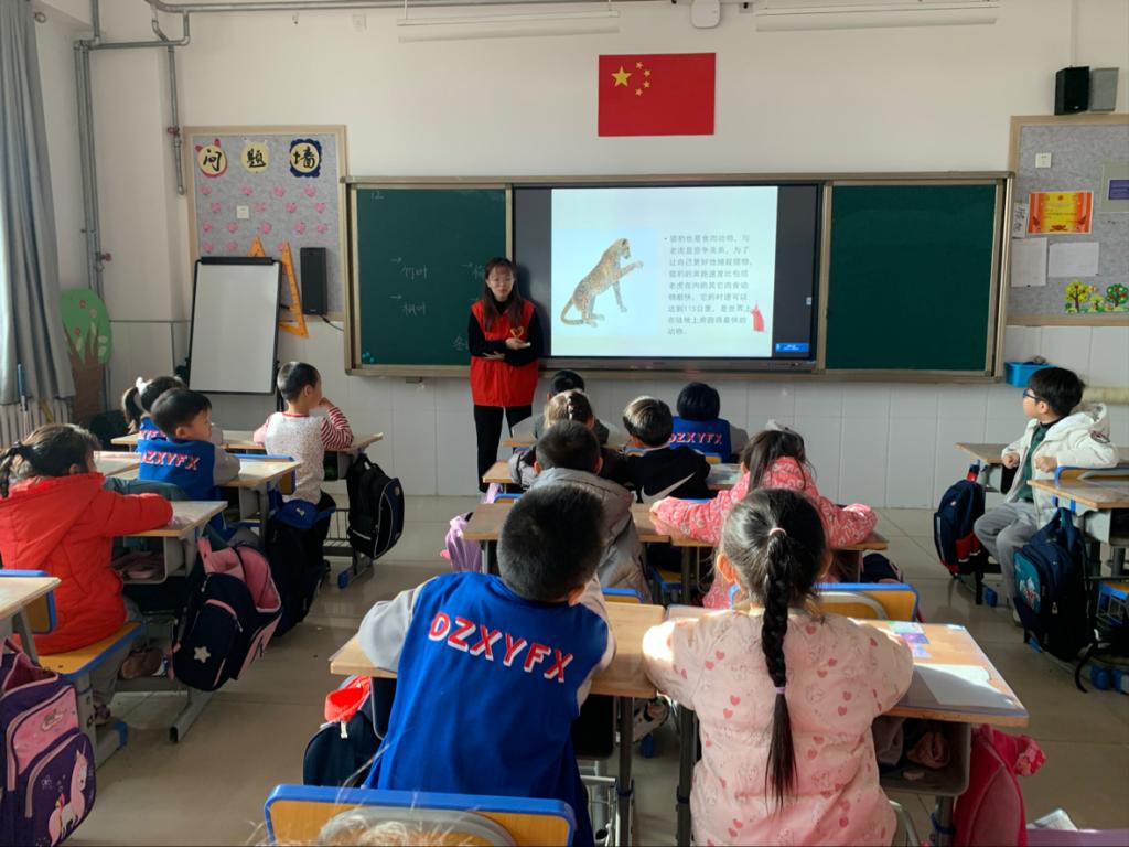 12月7日,为引导同学们树立保护动物的意识,了解动物生存的智慧,我院于德州学院附属小学北校区举办“动物生存显智慧,百年峥嵘展新篇”爱心课堂活动。此次活动邀请了2020级生物科学专业的潘亚宁同学作为志愿者老师前往德州学院附属小学北校区一年级三班授课。
