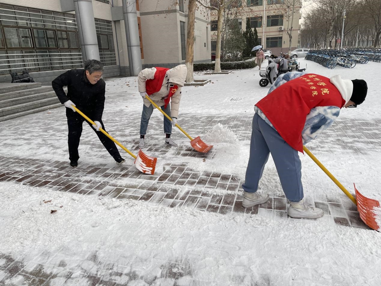 为保障同学们的出行安全,尽快解决积雪给学校道路交通带来的诸多不便,2021年12月25日,我院学生在学院领导的带领下开展了扫雪除冰行动。