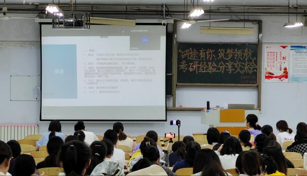 4月26日下午,为帮助同学们明确考研目标,树立考研信心,充分发挥榜样力量,我院于求实楼0111教室,通过线上线下相结合的方式,开展“研”途有你,筑梦领航考研经验分享交流会。