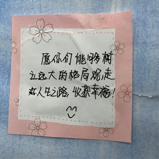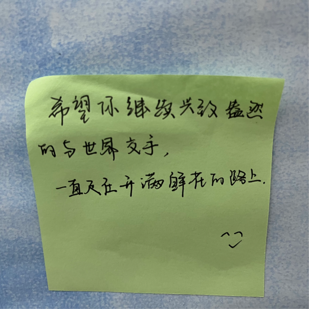 活动中,毕业生们纷纷在便利贴上写下自己对母校的留恋、对老师的感谢、对学弟学妹的建议和鼓励以及对未来的寄语,他们将便利贴粘贴到精心制作的寄语墙上,并与寄语墙进行合影留念,以此激励自己为梦想坚持不懈地奋斗,满满的心愿在墙上随风摇曳,形成一道独特亮丽的风景线。