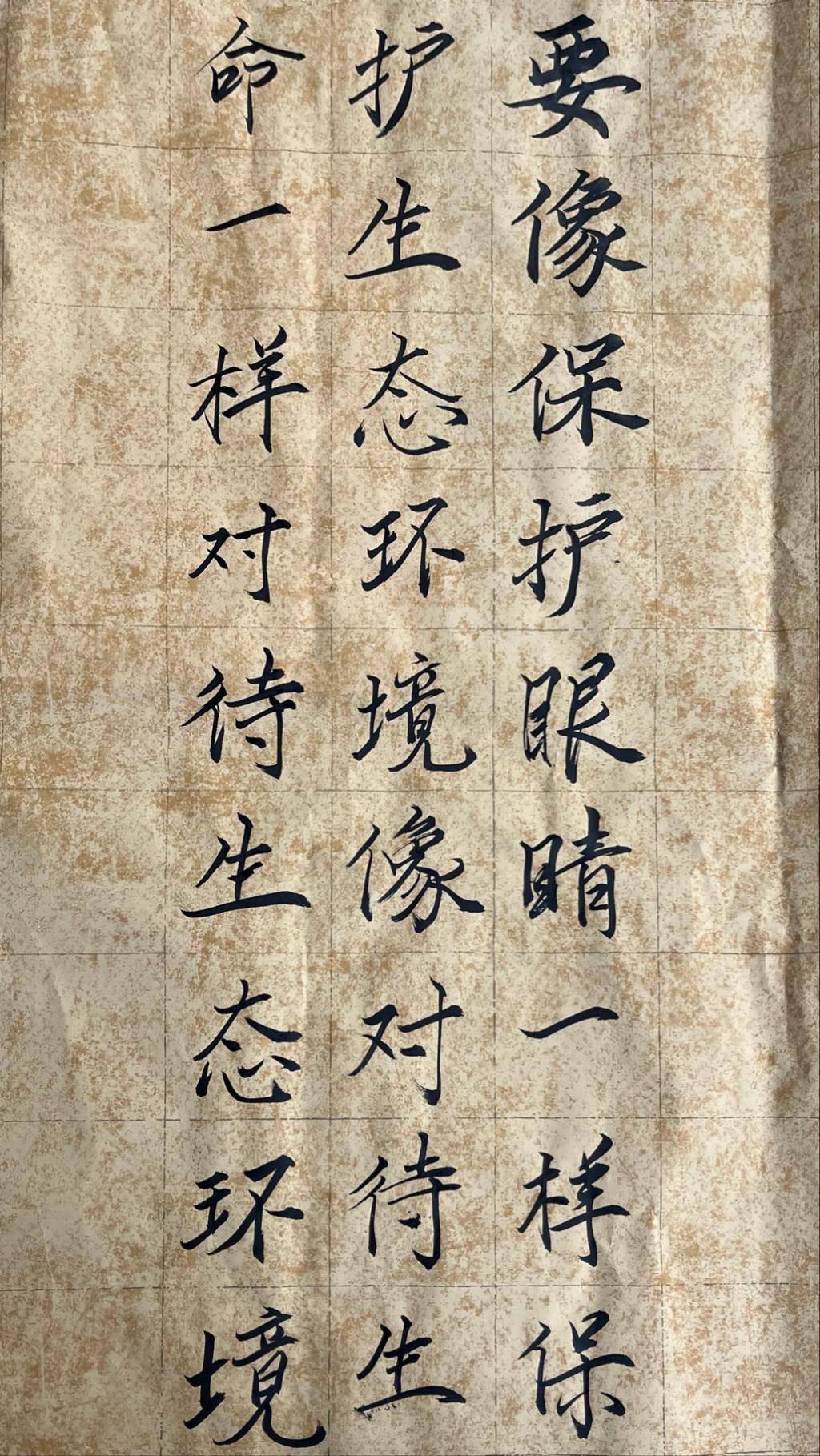 比赛中,同学们聚焦习近平生态文明理念金句,将“绿水青山”、“生态文明”和“生态环境保护”作为书写主题,泼墨挥毫,以可见可感的艺术方式宣传生态文明思想,表达出对建设文明、美丽生态家园的美好期许,充分展现出我院学生关注生态文明、积极参与到建设绿色环境的良好风貌。