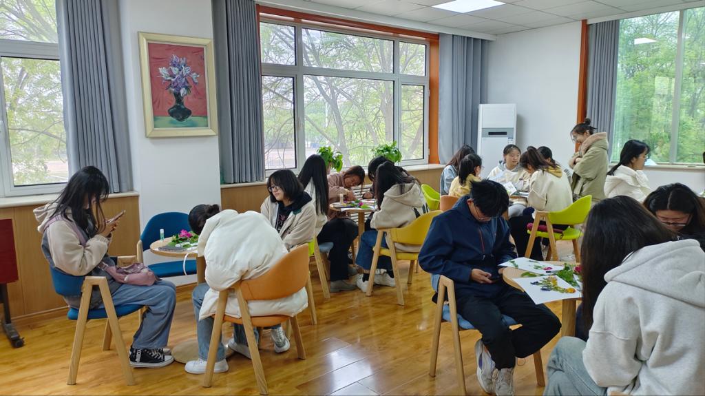 4月22日,为进一步丰富大学生校园文化生活,感受花语的魅力,久久久亚洲精品依托花艺爱好者协会于事物发展中心二楼博学谷举办春日粘贴画活动。