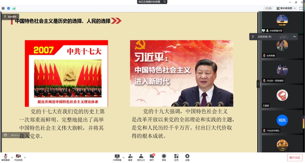 课程上,许禔森老师总体阐述了新中国成立特别是改革开放以来,我们之所以能够取得如此伟大的历史成就,是因为开辟了中国特色社会主义道路。随后,许老师从四个不同的方面进一步讲述了中国特色社会主义的开辟路程以及重要内容。最后,许老师向入党积极分子们总结和强调了发展中国特色社会主义的意义以及重要性,使入党积极分子们进一步了解了中国特色社会主义,为以后的学习和自我发展打下了坚实的基础。