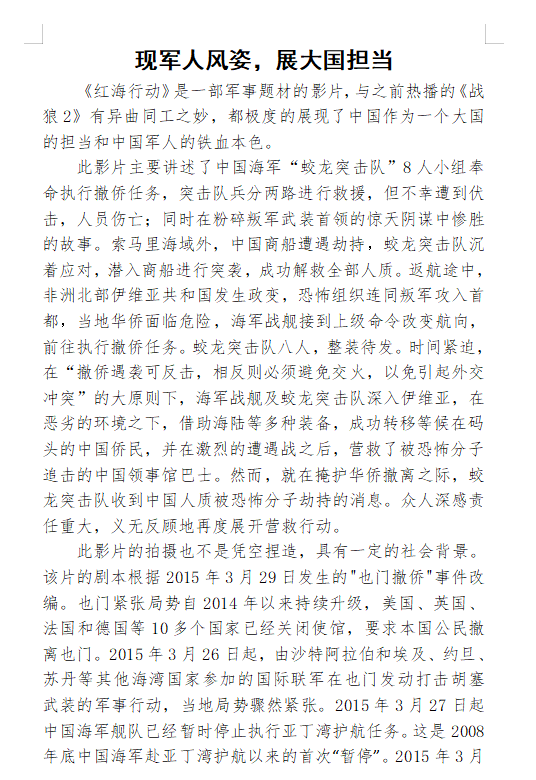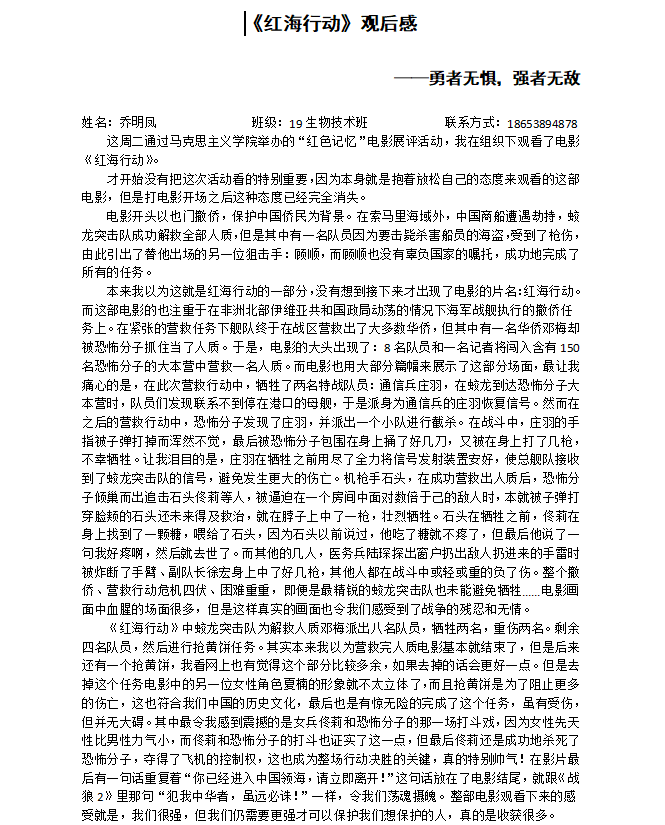 活动期间,同学们观看了《八佰》《红海行动》《空天猎》三部弘扬时代主旋律的优秀电影作品。影片放映开始前同学们便按耐不住焦急的心情早已在教室等待。观影过程中,同学们聚精会神,沉浸于历史长河中去找寻自己内心深处与祖国的情感共鸣。播放至高潮时,同学们潸然泪下。人肉炸弹不怕牺牲、视死如归的精神,蛟龙队员孤军奋战、不畏强暴的英勇,无不催人泪下,引起同学们共鸣。放映结束,全场迸发出雷鸣般的掌声。活动现场气氛融洽,秩序井然,离场时每人都还回味无穷。“骄傲”“感动”“震撼”......怀着无比激动的心情,同学们用笔尖书写下自己的真情实感。活动最后,经过评委打分以及令人紧张的网络评选后,久久久亚洲精品乔明凤、林贵凯、徐硕淇同学分别取得了一等奖、二等奖、三等奖的优异成绩。