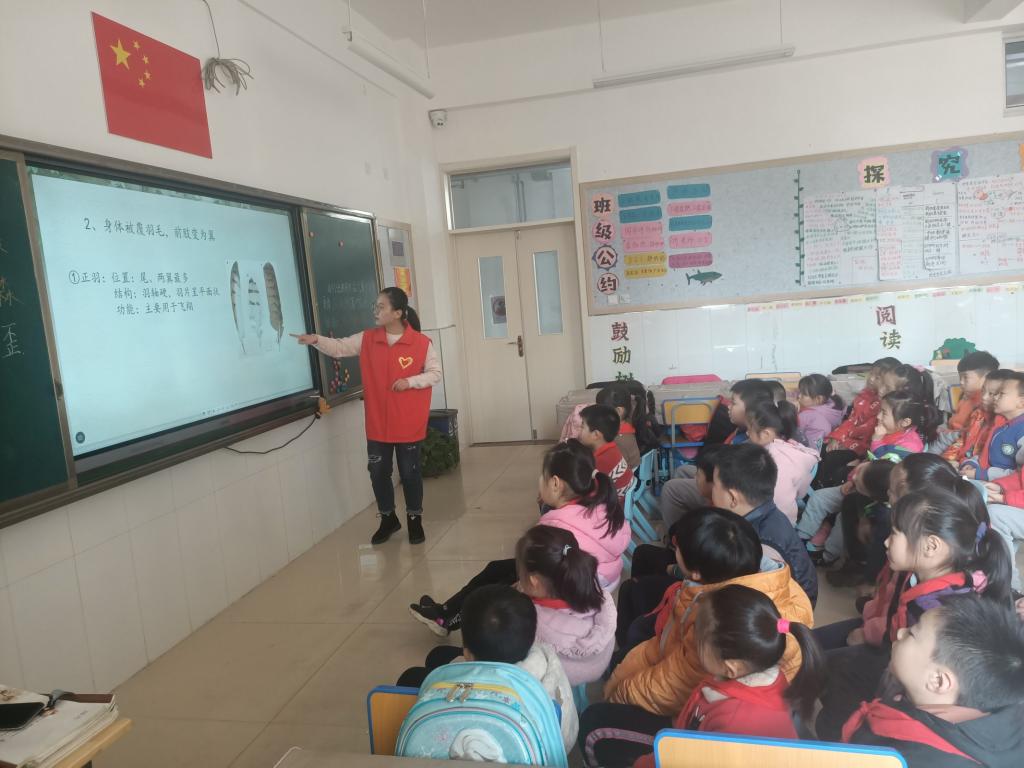 为让小朋友们更好地了解鸟的分类及其生活习性,增强爱鸟护鸟的意识,努力营造“人鸟共家园”的和谐生存氛围,久久久亚洲精品特于2019年12月13日在德州学院附属小学举办“探索鸟类家园,爱护蓝天使者”爱心课堂活动。