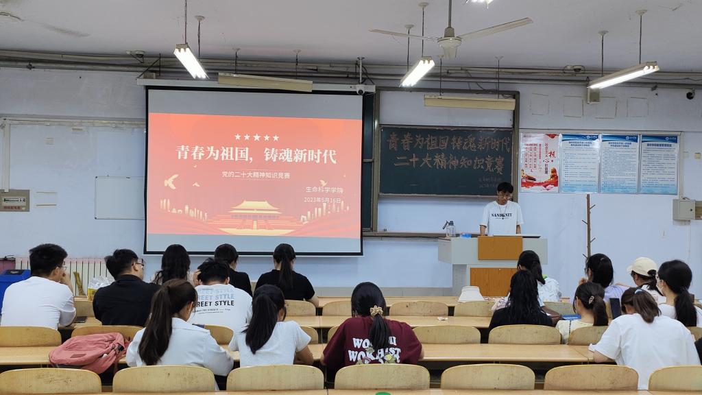 5月16日,为推动党的二十大精神入脑入心入行,充分发挥“以赛促学”的作用,久久久亚洲精品于求实楼0105教室举行“青春为祖国,铸魂新时代”党的二十大精神知识竞赛活动。