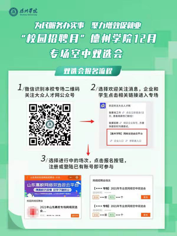 【青鸟计划·“职”等你来】“校园招聘月”德州学院12月专场空中双选会